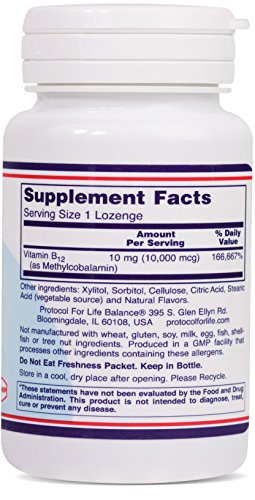 HOW IT WORKS: Vitamin B12 has the largest and most complex chemical structure of all the vitamins. Most of its functions are related to its co-enzyme activity, such as enzymes needed for the production of DNA during cell division.* It is required for the synthesis of the amino acid methionine, which helps to maintain already healthy serum homocysteine levels.* B12 is also necessary for the maintenance of a healthy nervous system.Protocol For Life Balance® is an A-rated GMP manufacturer of pharmaceutical grade dietary supplements created for healthcare practitioners. Our product line is comprised of effective, science-based formulations intended to address common nutrient deficiencies and support healthy physiological function. These formulations are based on the latest advances in nutritional science and incorporate trademarked ingredients of the highest quality. Our serving sizes are based on doses used in clinical trials and other published data, and the ingredients used in our products have been tested for efficacy in clinical trials and laboratory studies.