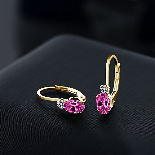 -. Title : 1.27 Ct Oval Pink Created Sapphire White Diamond 14K Yellow Gold Earrings