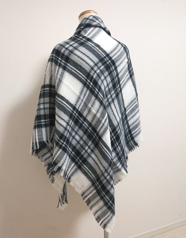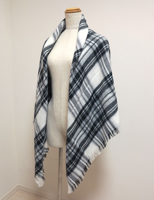 起毛感のあるふんわりとした肌触りが嬉しい正方形の大判ストール トレンドのチェック柄を揃えました☆ ソフト地でしっかりあったかい、ぜったい1枚は持っておくべき冬の定番アイテムです。 三角折り使いなら、巻きやすく、肩から羽織ってもgood。 首元にはアフガン巻きでボリューミーにまとめると、可愛く小顔効果あり、防寒効果ありの◎。 お出かけのおしゃれにはもちろんのこと、肩掛け、ひざ掛けなど、おうちでも、オフィスでも、気軽に使えて、大活躍すること間違いなし♪ カラーは、ブラック&ホワイト、ワインレッド系、ネイビー系、イエロー系、ブラウン系の5色。大判だからメンズにも人気です☆ |