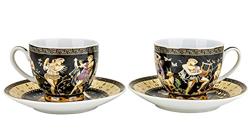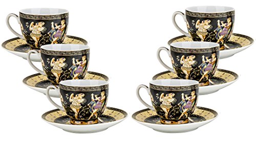 Studio : Euro Porcelain Publisher : Euro Porcelain Product Description This graceful 12-piece porcelain espresso shot service in a glossy gold-plated finish will allow you to share a lovely cup of espresso with six friends or family members, bringing color and beauty to your coffee break. A classic example of the modernized antique tradition, the set's design draws its inspiration from the ancient Greek vases and mythology. Each piece is skillfully decorated with a highly stylized antique scenery and Greek Key patterns on a dark background. Original, timeless and charming, the set is rendered in fine high-quality porcelain and combines classic form with intricate detailing, that will easily complement even the most upscale table settings. From annual birthdays and holidays to once in a lifetime weddings and christenings, this coffee set will be a great gift idea for any special occasion. Comes in elegant gift box. A great solution for festive occasions or everyday meals, this vibrant set will bring infinite beauty and sophistication to your home. 0