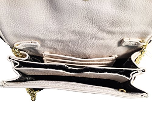 -. Brand : Betsey Johnson -. Color : Bone -. Department : womens -. EAN : 0634563044036 -. Feature : Mini Handbag, Wallet / Off White Faux Leather, Black Trim / 22" Shoulder Strap, Gold Hardware / Metal Bow With Snap Closure / 6.5" x 4.5" x 1.5" -. ProductGroup : Shoes -. ProductTypeName : HANDBAG -. Title : Betsey Johnson Wallet On A String Scallop Metal Bow Bone Bag -. UPC : 634563044036