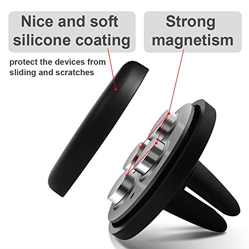 Strong Magnet - The magnetic base of this vent mount does adjust to the slats on your air vent. Four rubber prongs on the back are designed to make sure you have a nice snug fit. The silicone rubber surface of the smartphone car mount keeps the phone from scratching thus no impairment of field of vision. No more problems with any slippage while driving, even when hitting bumps along the road. No issue with magnets interfering with battery, GPS or mobile data, de-magnetizing credit cards