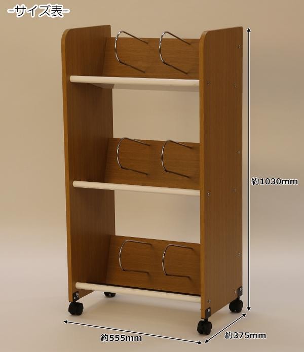| キャスター付き3段型のファイルワゴンです。棚板部分は丈夫なスチール製で、クリアファイルでも倒れにくいでこぼこシート付き☆仕切り棒は通常の仕切りよりも手前に突き出していて、ビスで固定されているので、ファイルや本等の重みで動きません!!木目調なので、オフィスだけでなく家庭のインテリアにもおすすめです。 |
