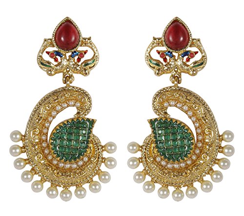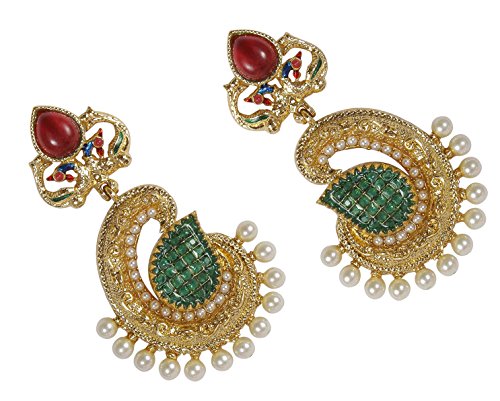 Matching Pair of Earring is crafted through finest & exclusive raw material. A designer Polki earring that make you feel royal. The color complement all outfits & may worn as a statement piece to any occasion.