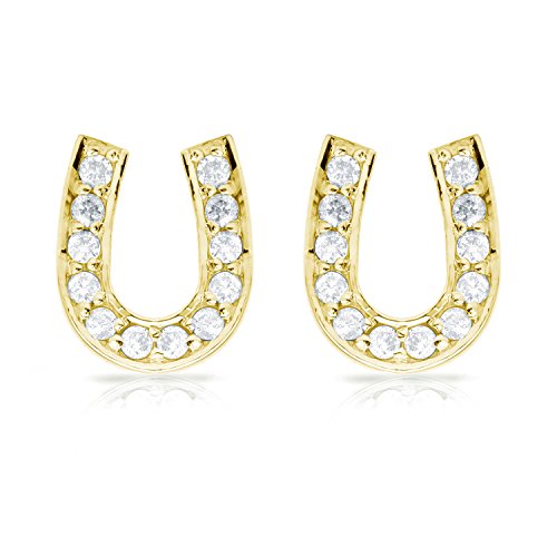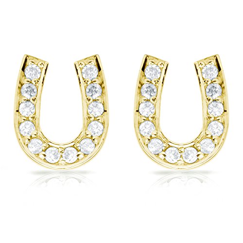 -. Title : 10k Gold Horseshoe Shaped Round-Cut Diamond Earrings (1/10-1/3 cttw)