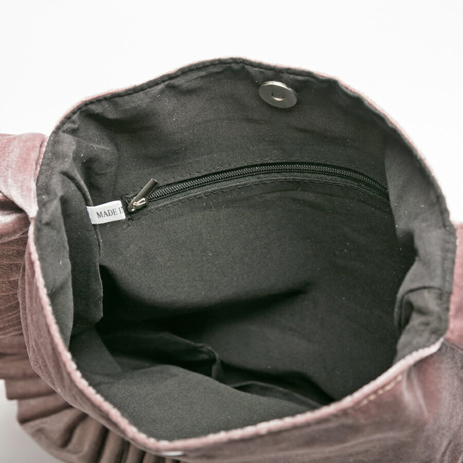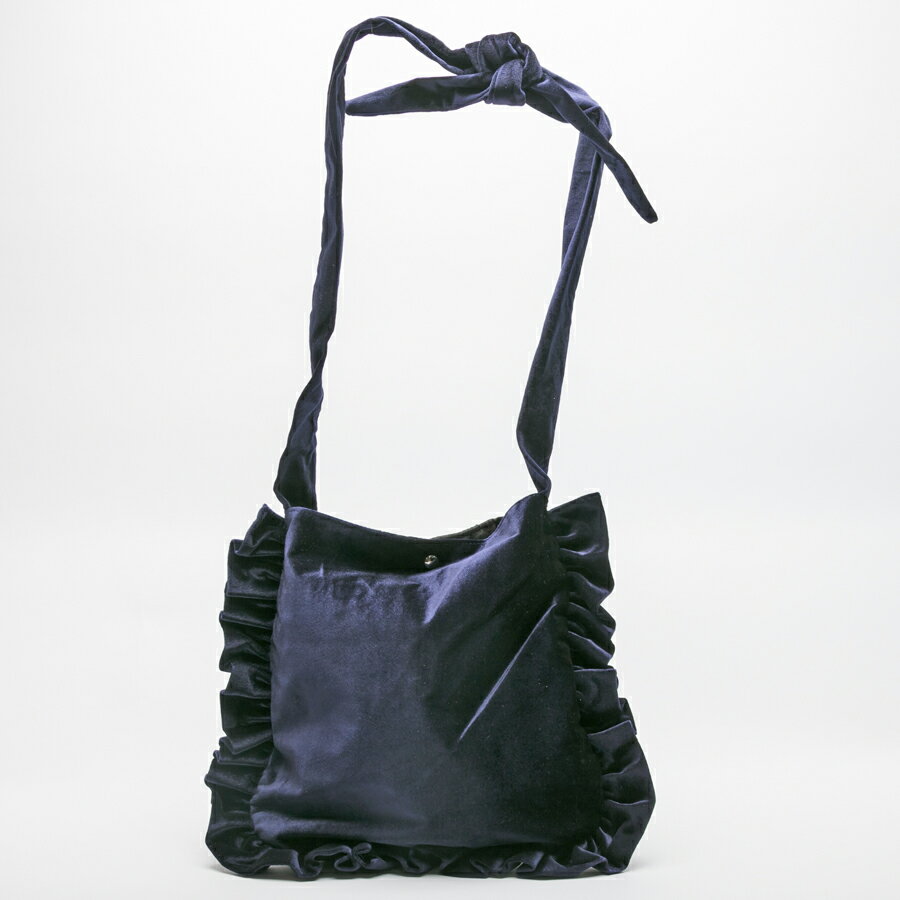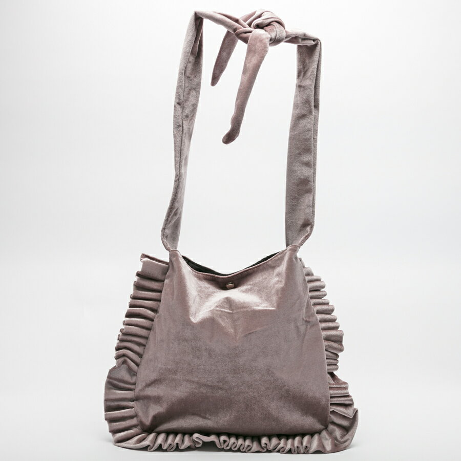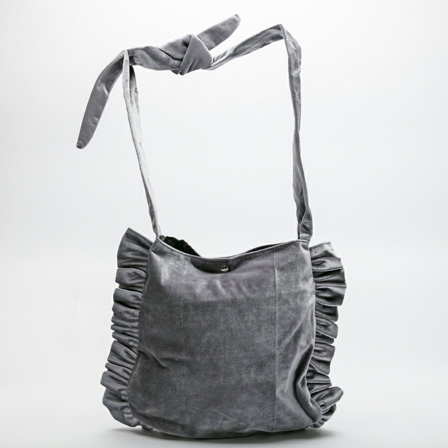 今年秋冬トレンドのベロア素材で、フリルが可愛らしいショルダーバッグです。