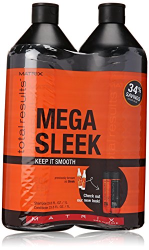-. Feature : Duo of total results mega sleek set with shea butter / Total results mega sleek shampoo 33.8 oz / After mega sleek shampoo, use conditioner apply to wet hair, rinse / Formerly, matrix sleek look