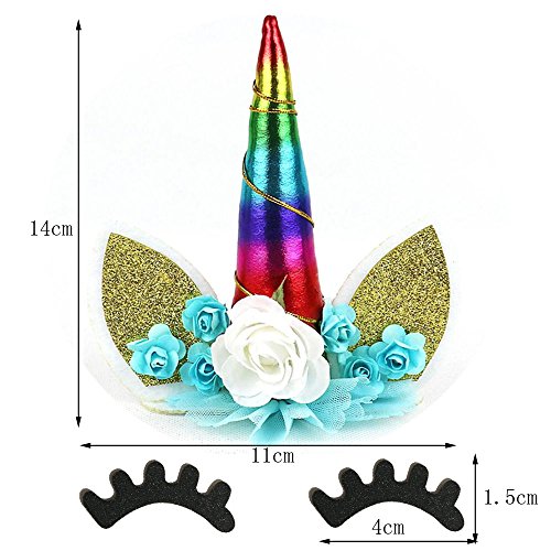 - Cake topper kit includes:Unicorn Horn, Ears, Eyelash and flowers,Ideal for an 8 to 10 inch cake to celebrate a your child's unicorn birthday!
