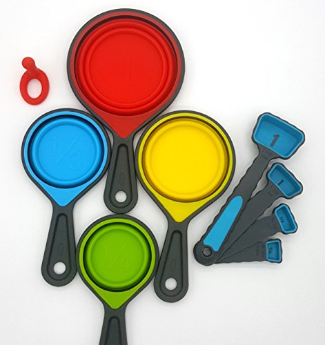 Collapsable measuring cups with collabsable funnel 8 Pc Nesting silicone measuring cup sets with funnel (BPA Free)