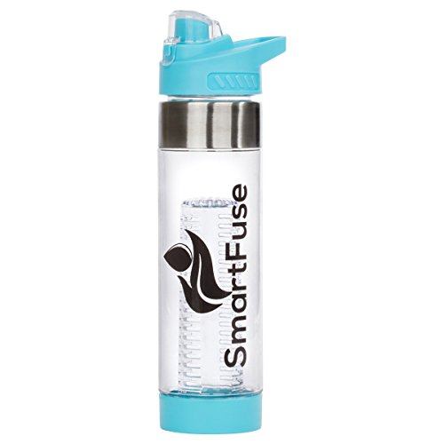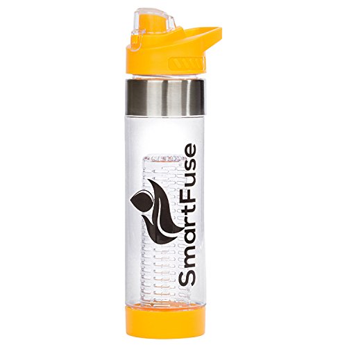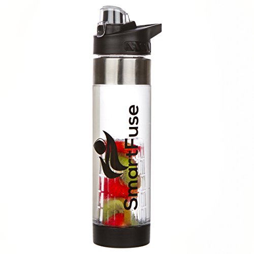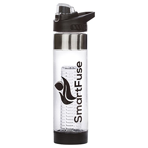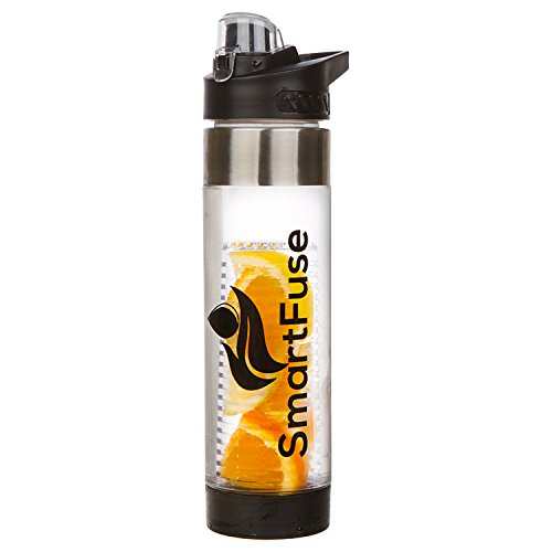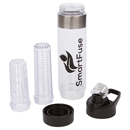 Hydrate The Smart Way It's no secret that drinking plenty of water has many positive health benefits such as: maintaining balance of body fluids, provides energy, may help to prevent and treat headaches, improve digestion, prevents hangovers, and helps with weight loss. Cut down on 50 grams or more per serving from soda, sports, and energy drinks! Start hydrating the smart way by utilizing the new SmartFuse fruit infuser water bottle to add natural flavors from your favorite fruits, veggies, and herbs to create a refreshing beverage with no calories! How Do I Use a SmartFuse Infuser Bottle? Cut up and add desired combination of fruits, vegetables, and even different herbs into one of the infusers and securely twist to the bottom base. After twisting the bottom cap to the bottle, pour water in and that's it! To extract maximum flavors, we recommend leaving it in the fridge overnight. If you can't wait that long, a quick shake will help loosen the flavors. Features:  24 oz (700mL) capacity infuser  Made from 100% BPA free eco-friendly shatterproof Eastman Tritan plastic  Premium design with stainless steel accents  Flip top EZ to drink water spout convenient for active users  Convenient and easy to hold handle  SmartFuse's fruit infuser attachment is located on the bottom for a more efficient and longer infusion  2 removable fruit infuser attachments for various combinations of fruits, vegetables, and herbs. Use the smaller infuser to accommodate room for more ice. Take out the infuser attachments to easily convert infuser into a trendy water bottle. (1 Standard, 1 Extended)  Top and bottom removable LEAK PROOF caps for quick cleaning *Please use only one fruit infuser attachment at a time *Hand wash recommended but dishwasher safe *Do NOT microwave or freeze SmartFuse Guarantee - If you are not completely satisfied with your infuser, our customer support team will be happy to help you with a replacement o
