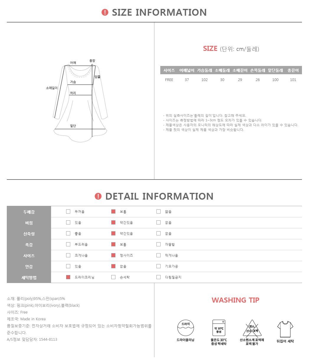 | 특이 사항 | 배송, 변경, 반품 환불에 대한 문의는 위 연락처로 문의 주세요. | ||