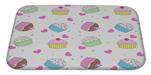 Gear New No Slip Microfiber Memory Foam Cupcake Pattern Bath Rug Mat, 34" X 21"
