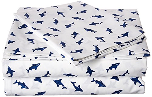 Poppy & Fritz 220852 Sharks Cotton Sheet Set, Blue, Twin X-Large