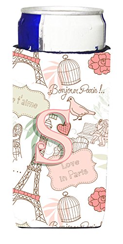 Letter S Love in Paris Pink Ultra Beverage Insulators for slim cans CJ2002-SMUK