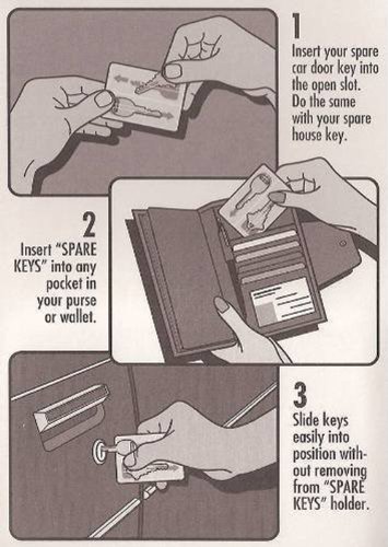 -. Binding : Apparel -. Brand : Amity -. Color : Neutral -. Department : mens -. EAN : 0046891112767 -. Feature : You can insert car key or house key / Use for purse and handbag / Easy to slide key in sert -. MPN : 93080007003 -. PackageQuantity : 1 -. PartNumber : 93080007003 -. ProductGroup : Apparel -. ProductTypeName : APPAREL -. Size : Regular -. Title : Plastic Insert for Spare Keys for Wallets and Purse and Hand Bags Credit Card Size -. UPC : 046891112767