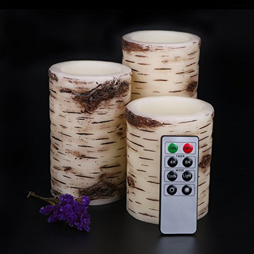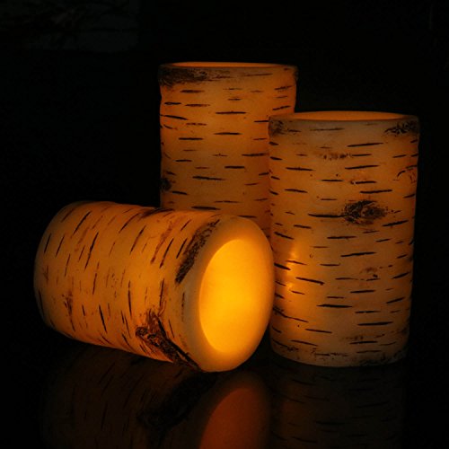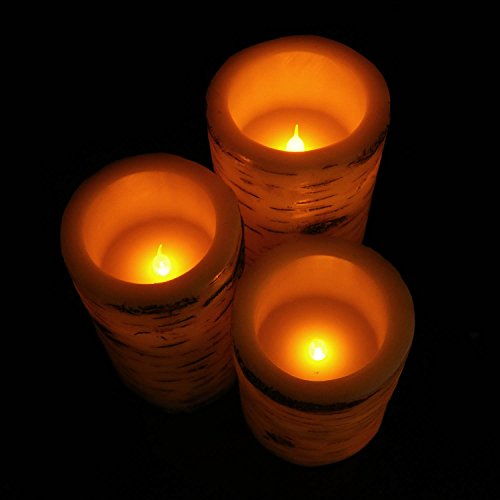 LedBack Wax LED Candles with Remote Flickering Amber Pillar Candles Timing Tea Lights Set of 3 Battery Operated Candles for Wedding Holiday Christmas Party Decoration