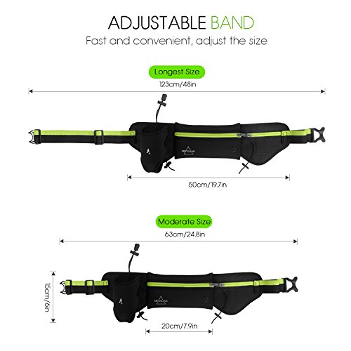 Hydration Waist Pack By Mosslian. Waist Runing belt with Water Bottle for Woman&Men-Top Running Gear with Waterproof and Reflective- Hands Free Workout-Fits iPhone 7 Plus (Black&Green)