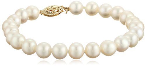 Jewelry set featuring necklace, bracelet, and earrings with round freshwater cultured pearls and yellow gold closures