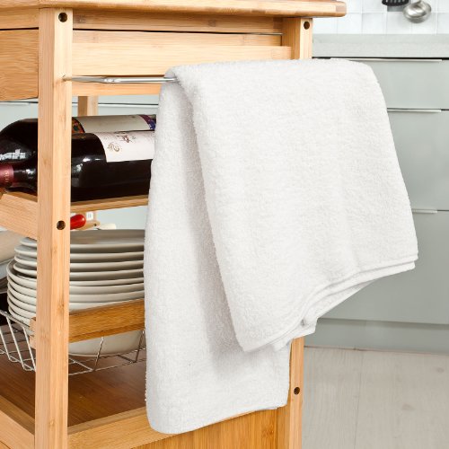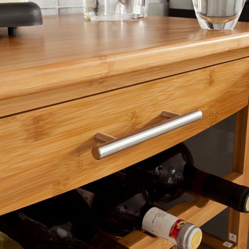 - Feature : Large Bamboo Wheeled Kitchen Trolley / Size:L23.6xW15.7xH36.2inch;Material: 100% bamboo;Color/Finish: nature/varnished / Includes 1 wine rack, 1 vegetable basket , 1 cutlery drawer, 1 cabinet with two doors and 1 handle/towel rail / Item delivered flat packed and requires simple assembly. / Detailed Instructions supplied.