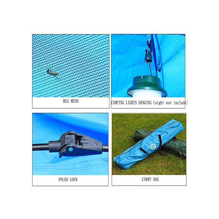 【세부 소개】내부는 자외선 컷의 UV도장이 무심코(그만) 있습니다. 텐트 상부에 환기 메쉬 있고, 비의 침입이나 자외선 방지용의 커버도 붙고 있습니다.도어도 두 개 있고, 각각 메쉬와 천의 2층이 있어 유독한 모기와 충등에교 희귀지 않습니다.실내에는 랜턴용 훅이나 소품 수납 포켓이 붙어 있어 편리합니다.