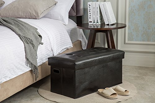 -. Feature : Sturdy and comfortable for sitting / Easy to assemble and fold, space-saving in folded shape, great furniture for bedroom, living room, hallway, enter way, bath room and dining room / Large storage capacity,suitable for storing garments,toys, magazines, shoes, clothing, blankets etc. / Muti-functions: Storage Chest/Trunk,cafe table, entryway shoes bench, foot rest, puppy step and so on / Size information:29.9 x 14.8 x 15 inches comfortable for sitting and resting feet
