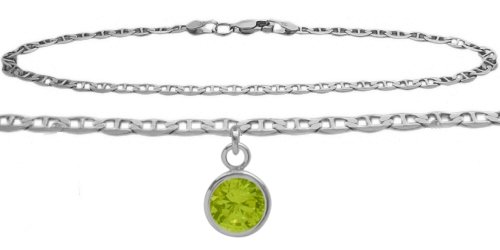 -. Title : 10K White Gold Mariner Anklet with Genuine Peridot Round Charm