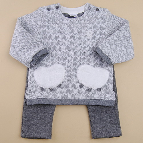 물결나염과 주머니 모티브가 귀여운 상하복입니다.