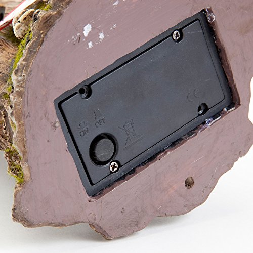 Sculpted of polyresin, our hand painted abode has a solar panel on the top which absorbs the sun's energy during the day, to power the three bright LED lights within, turning on automatically at dusk.
