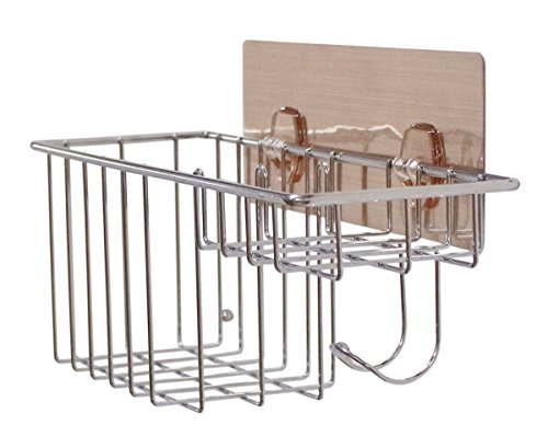 Multi-Purpose Removeable Adhesive Stainless Steel Kitchen Sink Holder - Basket Caddy with Hook