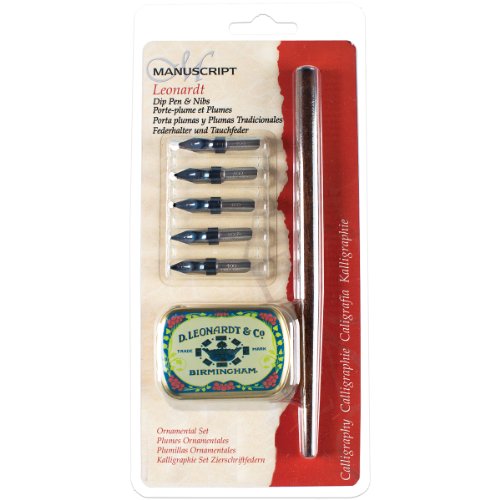 -. Feature : Develop an artistic and personal touch to your correspondence. / 5 ornamental nibs for consistent strokes. / Store nibs in tin when not being used. / Leonardt dip nibs are made by the Manuscript Company in England.