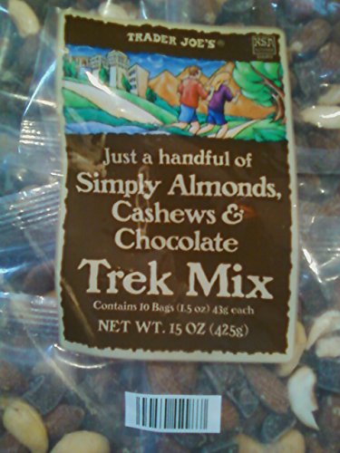 -. Feature : Trader Joe's Just A Handful of Simply The Best Almonds, Cashews & Chocolate Trek Mix 10 Individual Bags (1.5 oz each). / Simply toss one in your lunch box, pocket, or back pack! / Kosher