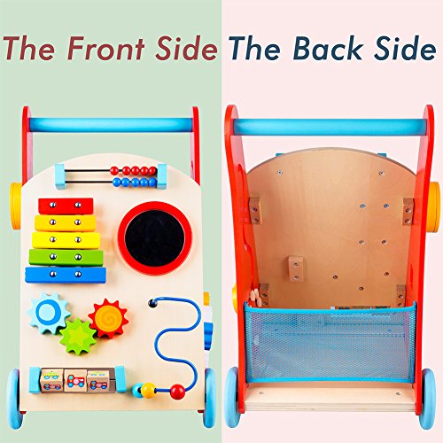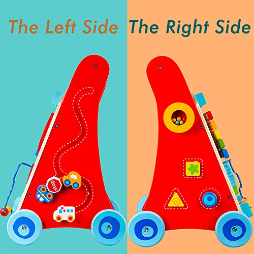 The baby push and pull toy will have baby zooming past on their feet in no time. This innovatively designed toddler toy features a sturdy wooden frame to provide kids a safe, stable base to lean on as they walk farther and farther each day, and brightly painted blocks that add even more entertainment.
