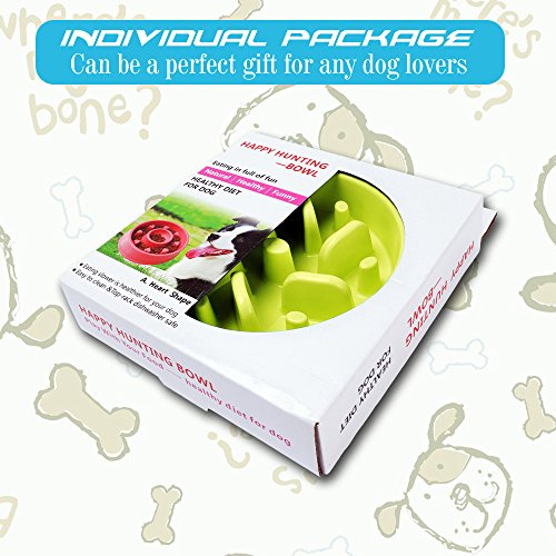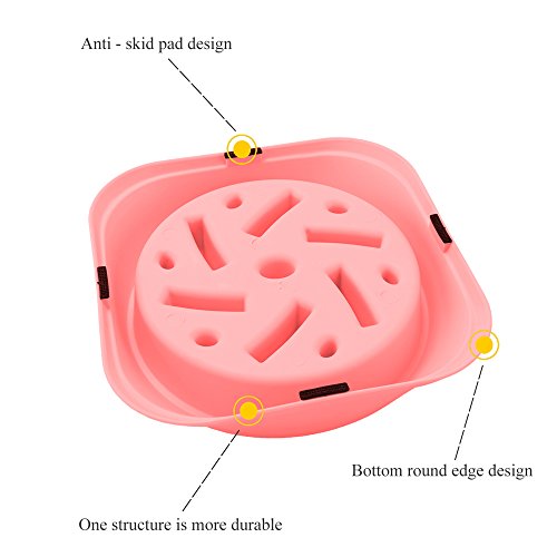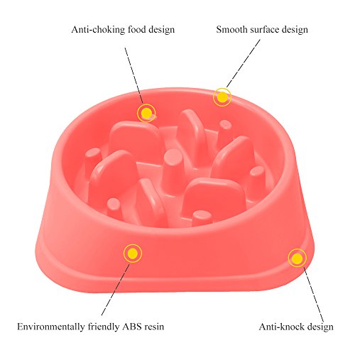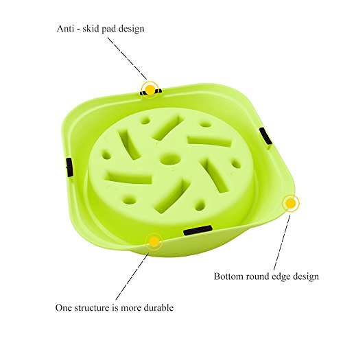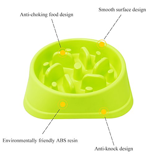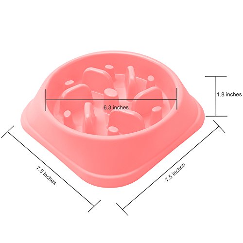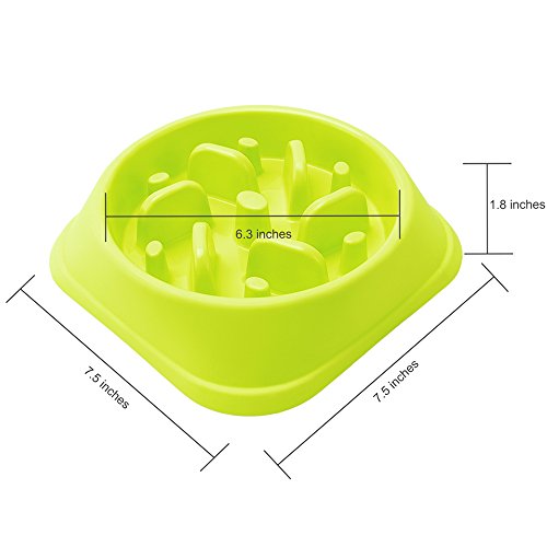 -. Feature : KEEP YOUR PETS HEALTHY: Promote healthy eating, adjust pet weight, prolonging meal time prevent indigestion. With Fun Feeders, pets eat a healthier and more balanced meal. / SLOW EATING: Reasonable distance between ridge and valley can effectively delay the pet eating speed. Smooth design of the mouth, to avoid the pet mouth and tongue from being scratched. / NON-SLIP OFF: Bowl base widened to prevent being knocked over by pets, the bottom four sides are attached with anti-skid pads, do not worry about pets to get food everywhere. / SAFE AND DURABLE: This product is made of food-safe ABS materials, natural environmental protection, safe and non-toxic, easy to clean, one structure is more durable. / SIZE: Bowl diameter 6.3Inch. Bowl bottom diameter 7.5Inch.High 1.8Inch.This slow bowl can holds about 1.5-2 cups of food.This bowl does its job to help your puppy eat slower.