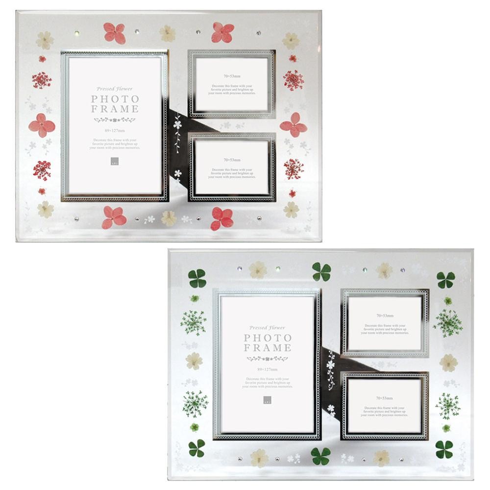 | 本物の押し花をちりばめたフォトフレーム。 |