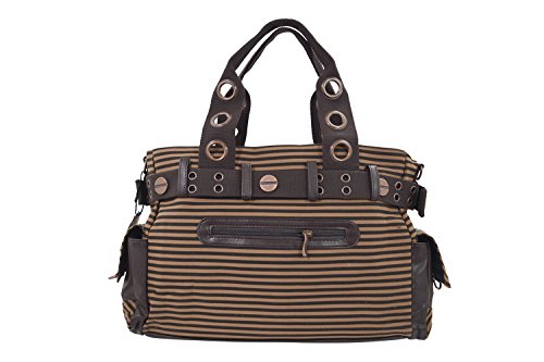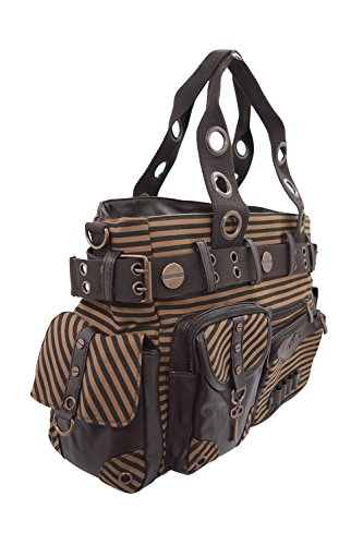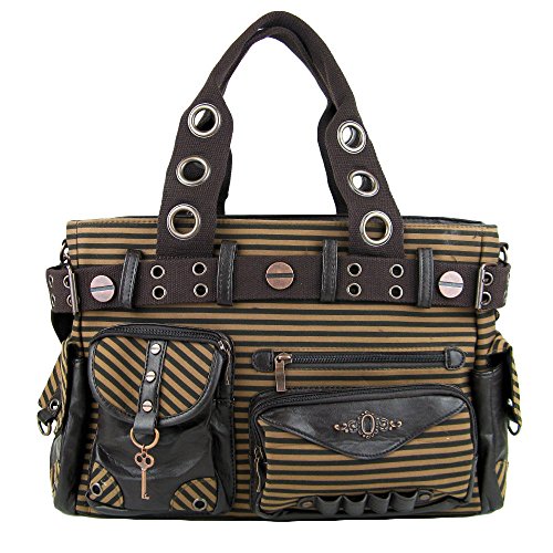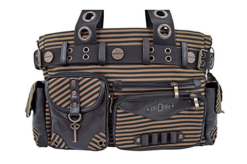 Banned Vintage Steampunk Brown Striped Belted Key Charm Handbag