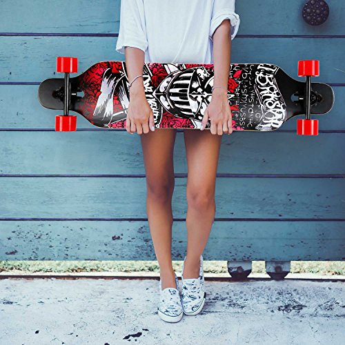 -. Title : ENKEEO 40 Inch Drop-Through Longboard Skateboard Complete for Carving Downhill Cruising Freestyle Riding