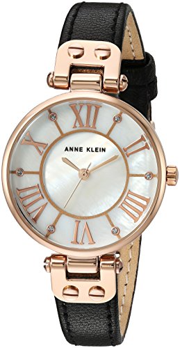 Mother-of-Pearl dial features gold-tone hour markers and hands and Anne Klein detailing.