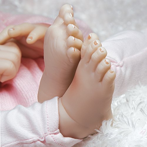 Silicone-like Flex TouchTM Vinyl is an innovative material with silicone base creating a texture that is as "soft as a baby's bottom" providing a delicate and realistic skin tone. The arms and legs are made from pure Flex TouchTM Vinyl while the head is created in a remarkable 2-step process giving it the effect of delicate skin on the facial features. This Vinyl is then finished by artists hand-painting the gentle details bringing the baby to "life".