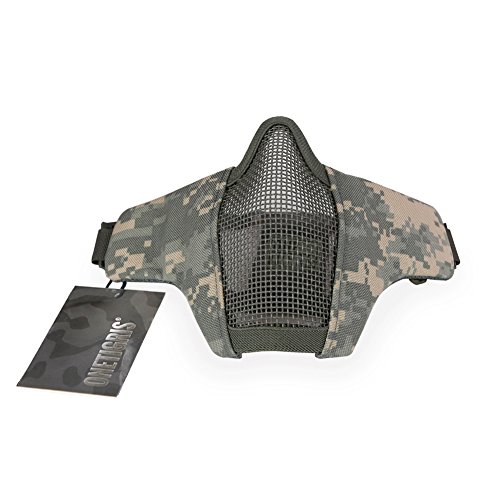 -. Binding : Misc. -. Brand : OneTigris -. Feature : ✎ Secure & Comfortable Fit: Features steel metal mesh face mask with soft padded nylon fabric; Provides covers from the nose to your chin / ✎ Lightweight & Folding Mesh Mask Design: Foldable mask makes it easy to carry; Superb air ventilation prevents fogging from the mesh part / ✎ One Size Fits Most: With two adjustable elastic belt strap half mask fit most people / ✎ Suitable for A Wide Range: Perfect for airsoft, hunting, paintball, shooting and any other outdoor activities / ✎ This airsoft mesh mask has passed ANSI Z80.3 drop ball test. At a temperature of -10℃~42℃, the impact resistance is at least 800 FPS -. IsAutographed : 0 -. IsMemorabilia : 0 -. Label : OneTigris -. Manufacturer : OneTigris -. PackageQuantity : 1 -. ProductGroup : Sports -. ProductTypeName : SPORTING_GOODS -. Publisher : OneTigris -. Studio : OneTigris -. Title : OneTigris Foldable Half Face Mesh Mask Military Style Comfortable Adjustable Tactical Lower Face Protective Mask 9 Colors Available