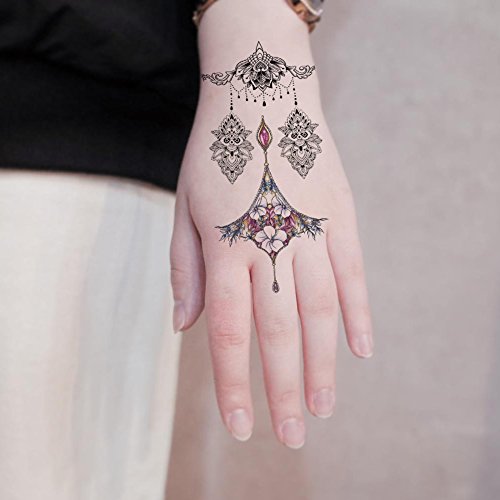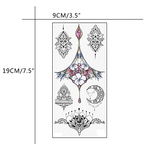 TAFLY Temporary Tattoo Gem Lace Fake Sexy Body Art Tattoos Stickers 5 Sheets