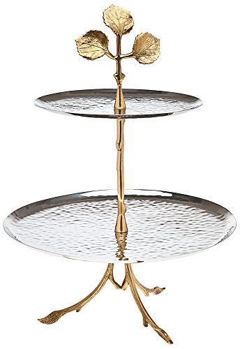 Godinger Leaf 16 1/2" High 2-Tier Brass and Silver Server