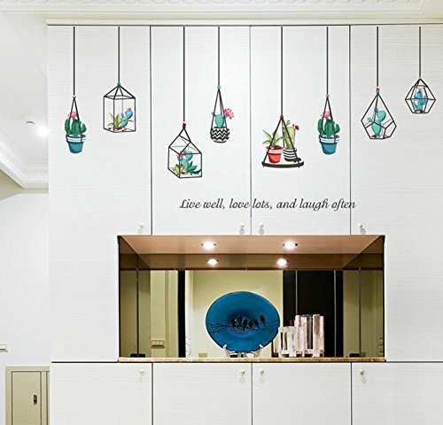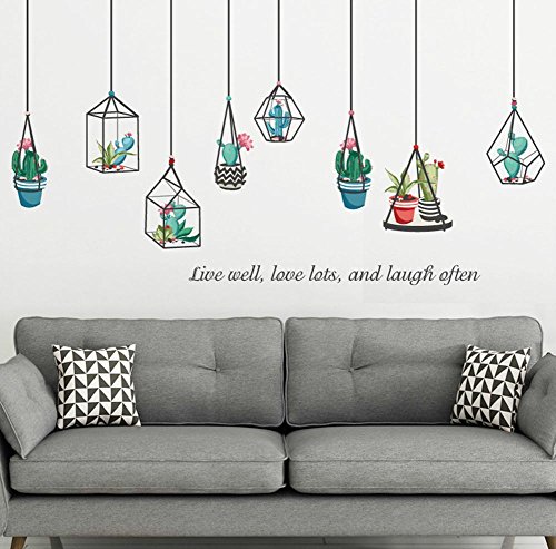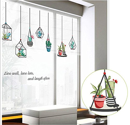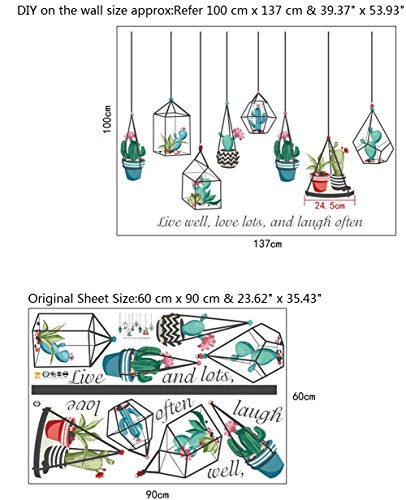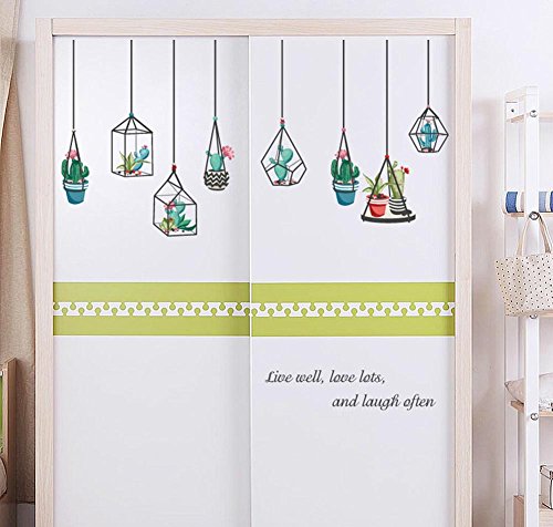 BIBITIME Geometric Flower Pots Growing Plants Cactus Wall Decal Sticker for Bedroom Living Room Porch TV Background PVC Decorations Home Art Mural Nursery Kids Room Decor