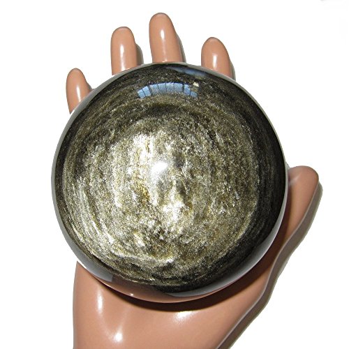 Your sphere is made from obsidian, which is volcanic glass. It appears black in normal lighting, with some white dimples and snowflake markings natural to obsidian. When placed in direct sunlight or very bright lighting, the sphere reveals wonderful gold sheen sparkles. One of a kind protective sphere hand picked by Satin Crystals for you. Receive this exact stone pictured when you order from Satin Crystals.