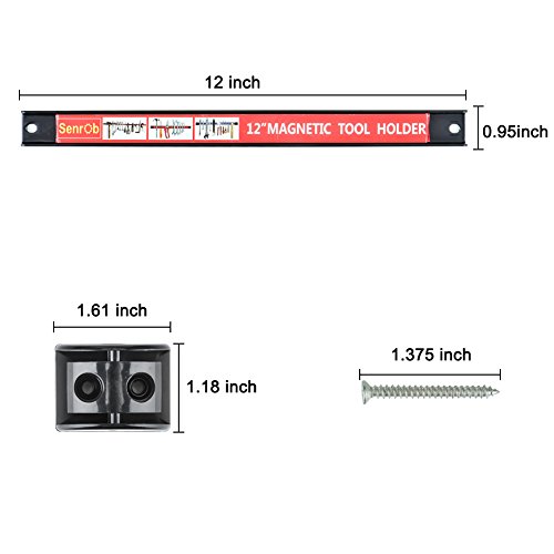 Senrob 4 PCS 12" Magnetic Tool Holder Bar Racks,Metal Magnet Storage Tool Organizer Set with Mounting Brackets&Screws