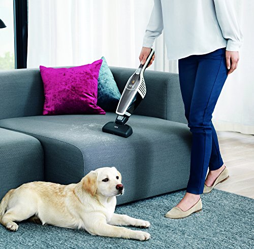 -. Feature : Leistungsstarker 2in1-Staubsauger mit Lithium-Technologie und entnehmbarem Akkuhandsauger, Made in Europe / Leistungsstarker Handstaubsauger mit Zyklon-Technologie: immer und überall einsetzbar, dank hochwertigen Bürsten-Fasern auch für empfindliche Bodenbeläge wie Parkett perfekt geeignet / Extra lange Laufzeit in der Eco-Stufe von bis zu 45 Min. und 16 Min. in der Powerstufe, 18 V Lithium HD-Power-Akku, 2x Leistungsstufen; Das intelligente Ladesystem schaltet automatisch ab und spart somit Geld und verlängert die Lebenszeit der Akkus / Dank optimalem Energiemanagement kostet eine Akkuladung weniger als zwei Cent; Patentierte Selbstreinigung der Bürstenrolle / Motorbetriebene Saugbürste mit Doppelgelenk und 4x leuchtstarken LED´s für beste Sicht auch an dunklen Stellen / Freistehende Parkfunktion: Das Gerät kann überall und jederzeit abgestellt werden, ohne das Gerät in die Ladestation stellen zu müssen / Inklusive Fugendüse und Bürste, diese kann sowohl am Gerät oder der Ladestation befestigt werden / Optionales Zubehör: AEG Erweiterungsset AKIT360 und AEG Austauschfilter AEF 144