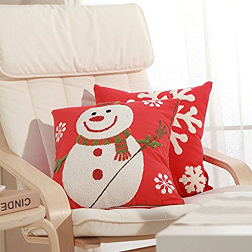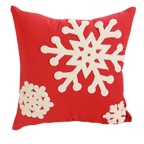Canvas Cotton Embroidery Throw Covers Christmas Snow Square Throw Pillow Covers Red