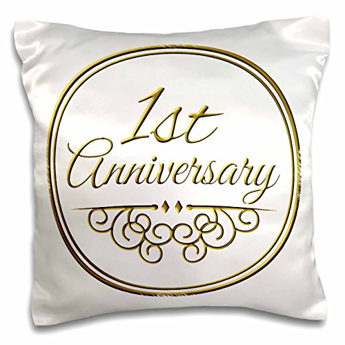 3dRose 1st Anniversary Gift-Gold Text for Celebrating Wedding Anniversaries 1 First One Year Together-Pillow Case, 16 by 16" (pc_154443_1)