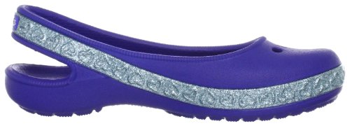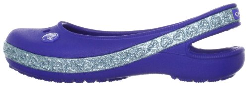 If your girl is about glitter and hearts and all that's sweet, she'll have a lot of fun with this flat. Light and comfortable, with plenty of charm. Slingback style gives her a more secure fit. Massage-pod footbed. Ventilation holes also give her room for Jibbitz charms. Fully-molded Croslite material for lightweight cushioning and comfort. Non-marking outsole.Feature