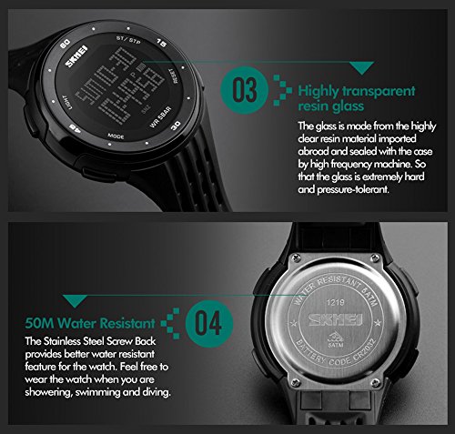 -. Binding : Watch -. Brand : SKMEI -. Department : Unisex-adult -. Feature : High Quality original installation import movement. / Japan original installation import battery. / 30 (M) meters waterproof. / Germany imported PU resin strap. / [Note] We recommend that you do not wear it to swim. If you go swimming or diving, do not press any button under water! -. Label : SKMEI -. Manufacturer : SKMEI -. MPN : SKMEI1219 -. PartNumber : SKMEI1219 -. ProductGroup : Watch -. ProductTypeName : WATCH -. Publisher : SKMEI -. Studio : SKMEI -. Title : SKMEI Digital Watch PU Resin Band Alloy Case Waterproof LED Multifunction Sport Electronic Wristwatch