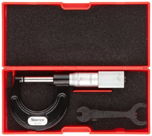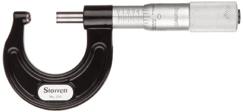 Starrett 211XP Outside Micrometer, Plain Thimble, Carbide Faces, 0-1" Range, 0.001" Graduation, +/-0.001" Accuracy, Black Enameled Tapered Frame